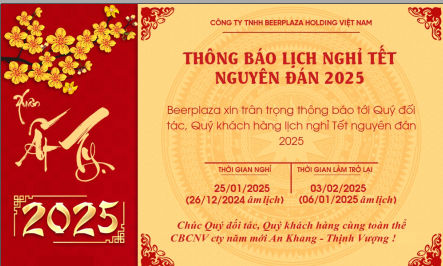 THÔNG BÁO LỊCH NGHỈ TẾT NGUYÊN ĐÁN 2025! 15 Th1 BEERPLAZA XIN TRÂN TRỌNG GỬI TỚI QUÝ KHÁCH HÀNG, QUÝ ĐỐI TÁC LỊCH NGHỈ TẾT NGUYÊN ĐÁN 2025